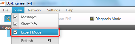 The settings can be changed according to the project’s needs. DC options are part of the EC-Engineer Expert Mode. The Expert Mode can be activated from the menu: