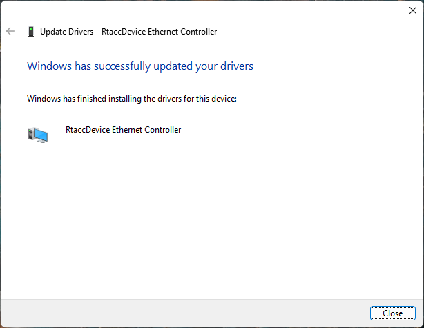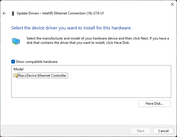 - Choose the RtaccDevice Driver and click “Next” and confirm the installation
