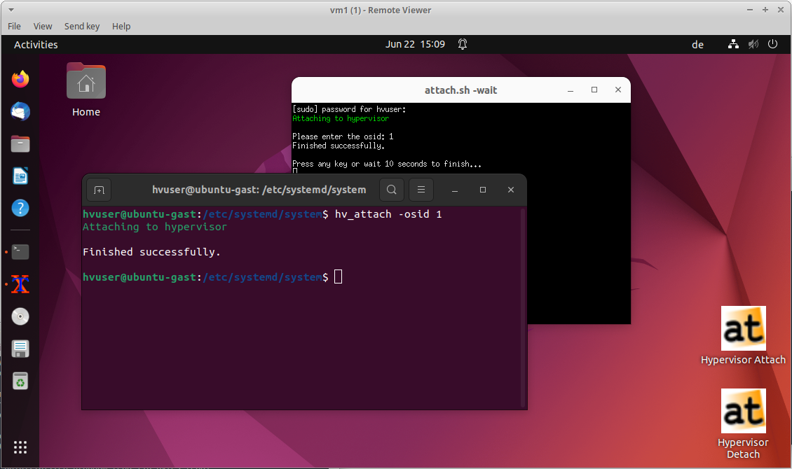 - After logging in into Ubuntu, execute “Hypervisor Attach” (Desktop icon)