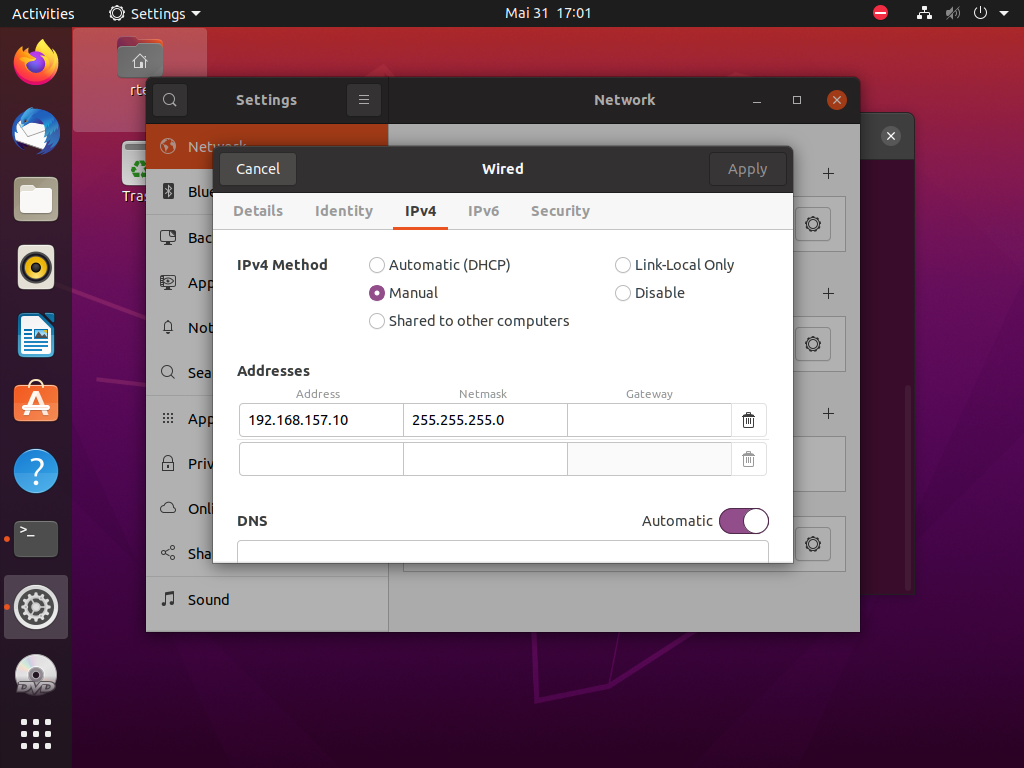 Switch into UBUNTU guest and goto Settings -> Network and edit the ens10 adapter.