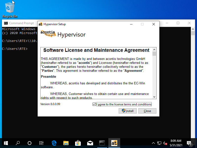 This guide describes how to set up a Windows guest in the acontis RTOSVisor. The Windows guest is running in a virtual machine, which is powered by QEMU/KVM. It is assumed that the steps listed in the Hypervisor Quick Start guide have been successfully executed.