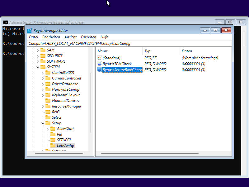 LabConfigregistry key andBypassTPMCheck+BypassSecureBootCheckvalues.Exit