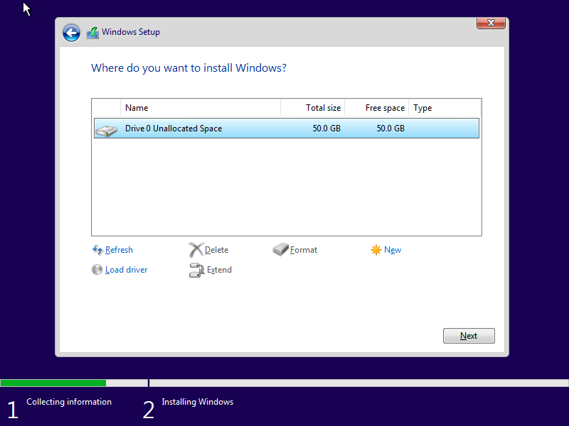 Follow the steps as usual until the Where do you want to install Windows dialog shows up